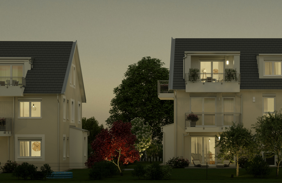 Die Fertigstellung der kleinen Wohnanlage, bestehend aus einem 12- und einem 6-Parteienhaus mit Tiefgarage und zwei Aufzügen wird für Ende Dezember 2020 vorgesehen. Garantiert wird im Kaufvertrag Ende März 2021.
